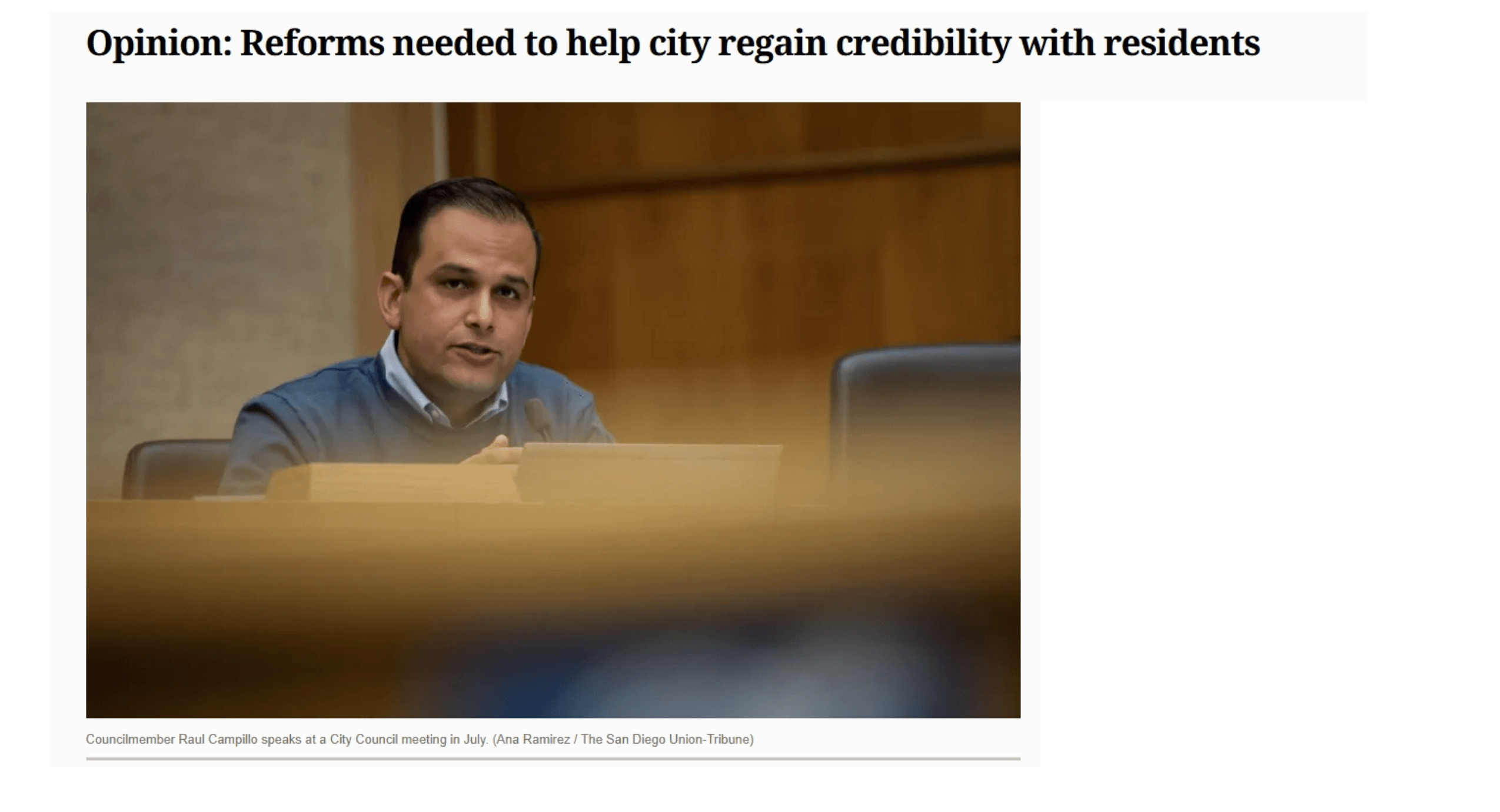 The San Diego Union Tribune also published an opinion piece, written by Jan Goldsmith, on my transparency proposals. As stated by our former City Attorney: “In addition to preventing a future bait and switch, Campillo has gone further in his plan to help the city regain credibility. He wants more clarity in city notices of proposed increases in existing fees and residents’ right to protest. Instead of burying information in complicated legalese, he wants the notice forms to be clear and concise. That is a much-needed reform.”