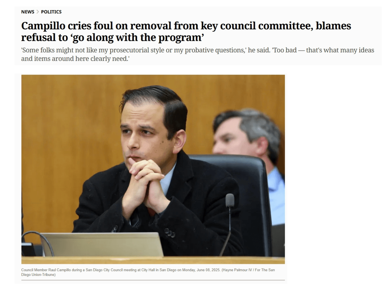 “I want a more accessible and more transparent San Diego — one where ideas can be debated openly at length, not punished for being expressed,” I said on Wednesday as I was officially removed from that committee.