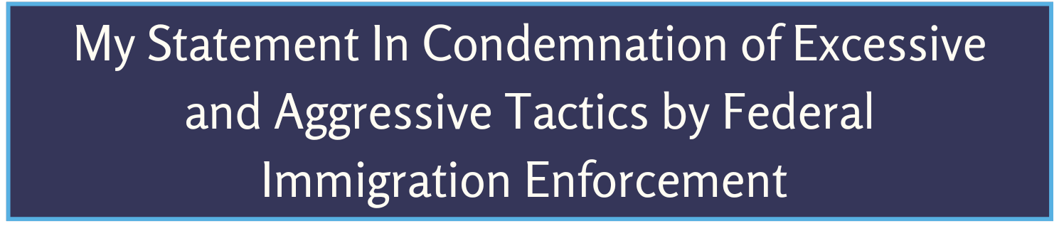 This week, I stood with my colleagues in supporting a resolution condemning the excessive and unnecessarily aggressive tactics used by federal immigration enforcement and in support of litigation against those actions. Public safety is built on trust, transparency, and accountability, not fear. Enforcement that abandons those principles weakens the rule of law.