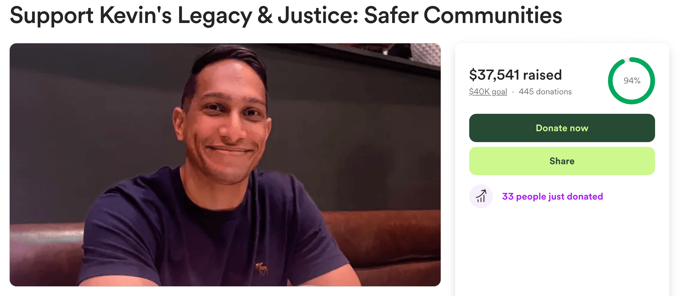 In addition, if you would like to honor Kevin, please consider a donation to the GoFundMe linked here. While specific charities have not yet been determined, 100% of the proceeds will go to fighting for justice for Kevin and protecting communities against violence. Our mission is to do our part to help avoid other families experiencing the same pain and grief we have felt from this horrific act.