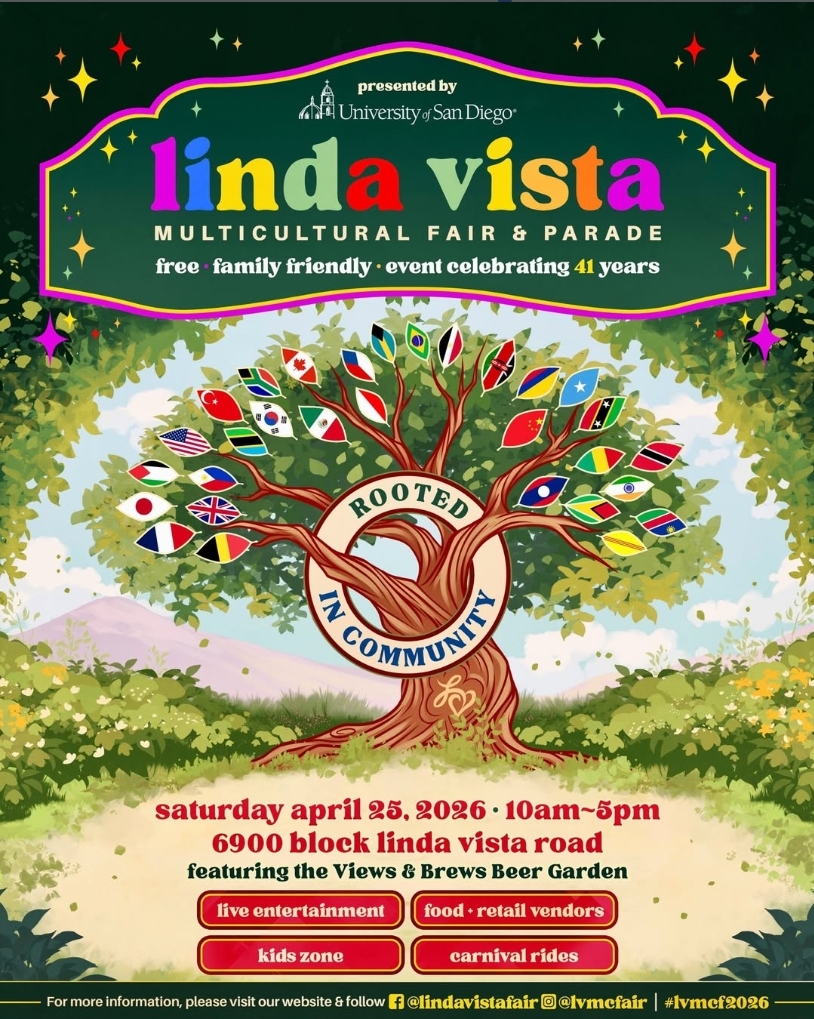The Linda Vista Multicultural Affair is quickly approaching. On Saturday, April 25, from 10 a.m. to 5 p.m., the 6900 block of Linda Vista Road will host a parade, food vendors, live entertainment, a beer garden, retail vendors, carnival rides and a kid zone in the celebration of community and multiculturalism. This is the 41st year of the Linda Vista Multicultural Fair, a staple in the community and one of my favorite days every year.