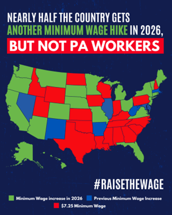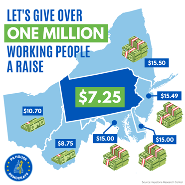 PA House Democrats have worked tirelessly to pass legislation raising the minimum wage to $15/hour and tying it to inflation—but every time, the Republican-led State Senate has refused to act. Pennsylvania hasn’t increased its minimum wage since 2009, when the federal rate was $7.25/hour. No one can live on that. It’s time for Senate Republicans to stop prioritizing tax breaks for billionaires and start supporting working families!