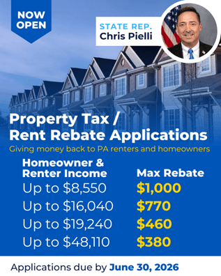 Please reach to my office staff for assistance at (610) 696-4990; or RepPielli@pahouse.net; or stop by 121 West Miner Street, Suite 1E, West Chester Borough.