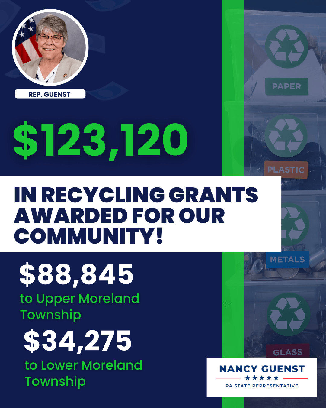 I am excited to share that both Upper Moreland and Lower Moreland Townships were awarded Recycling Program Performance Grants by the PA Department of Environmental Protection (DEP).