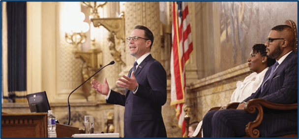 Image: Photograph of Gov. Shapiro from budget address event.