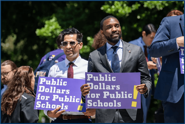 Image: Photograph of me and state Rep. Anthony Bellmon advocating for public school funding.