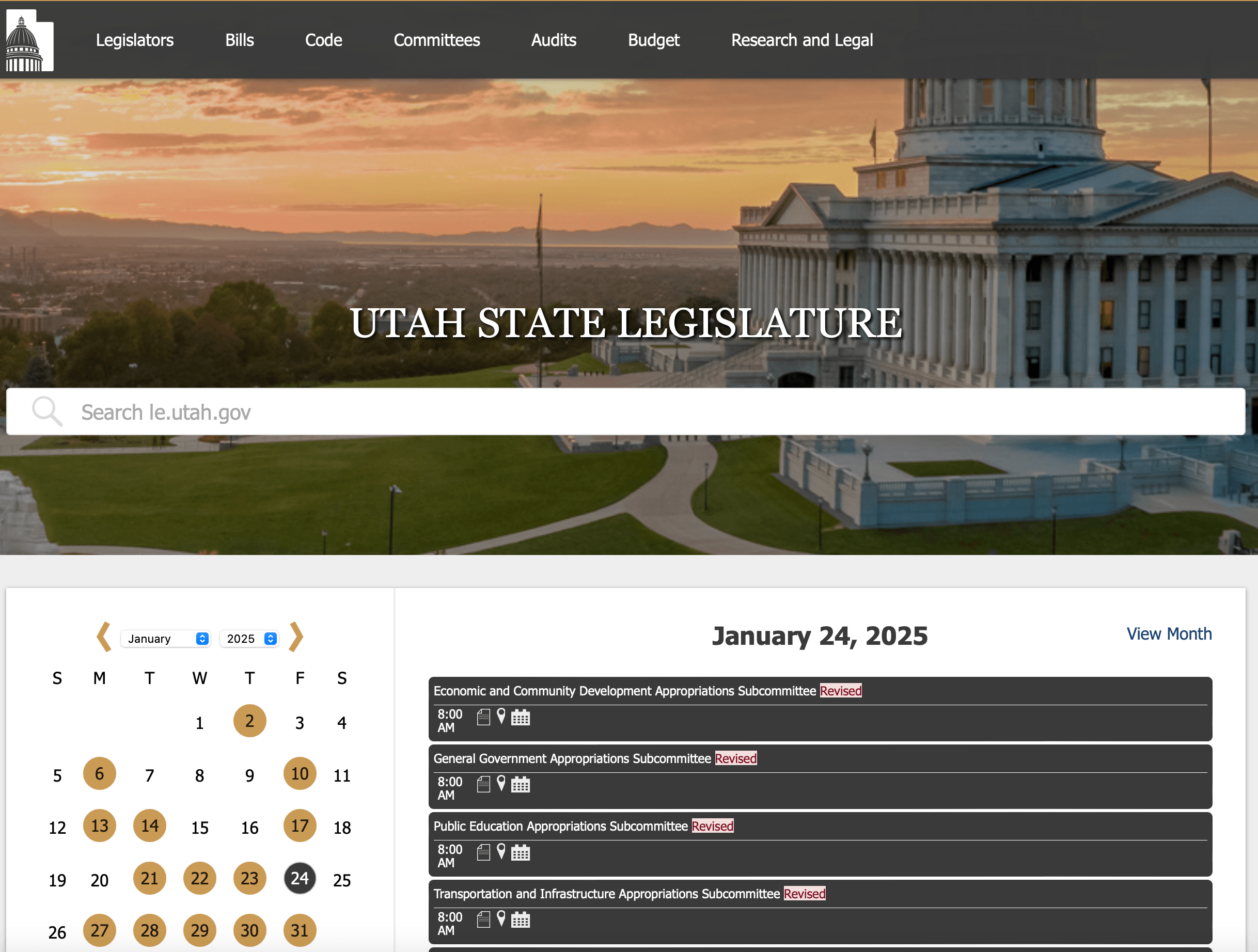 There are many free and easy to use resources to stay informed and involved during the legislative session. At the website le.utah.gov, you’ll find the following: