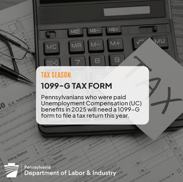 Pennsylvanians who received Unemployment Compensation (UC) benefits in 2025 will get a form called a 1099-G.