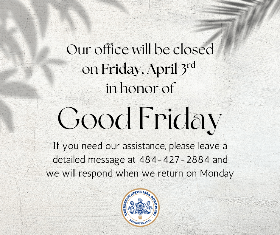 Finally, in case you missed it, PECO has proposed steep increases to electric and natural gas rates — raising electric bills by 12.5% and gas bills by 11.4%. This could not come at a worse time for people across our region and in the 168th. This only adds insult to injury at a time when everything is becoming more expensive. My colleagues in Delco and I, along with those in the collar counties, are strongly opposed to this increase, and we have put together a petition to let PECO know of our concerns and will be filing a formal objection with the Public Utilities Commission. We are united in fighting this unsustainable increase. Please stay tuned as we will be asking residents to join us in testifying before the PUC.