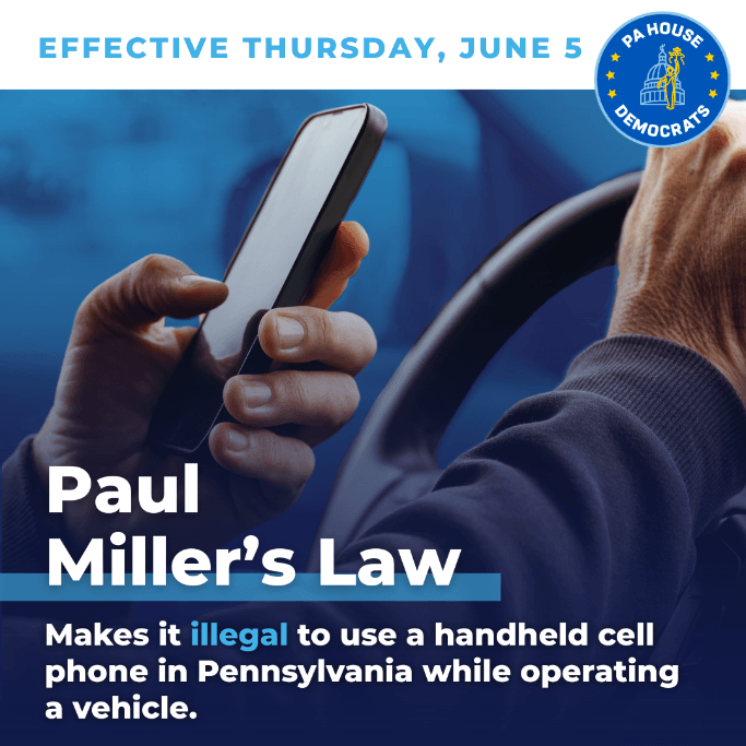 On June 5, law enforcement will start pulling over drivers using hand-held mobile devices while operating a vehicle – even if you’re paused in traffic or stopped at a red light. Paul Miller’s Law protects us all from distracted driving – put down the phone and keep your eyes on the road!