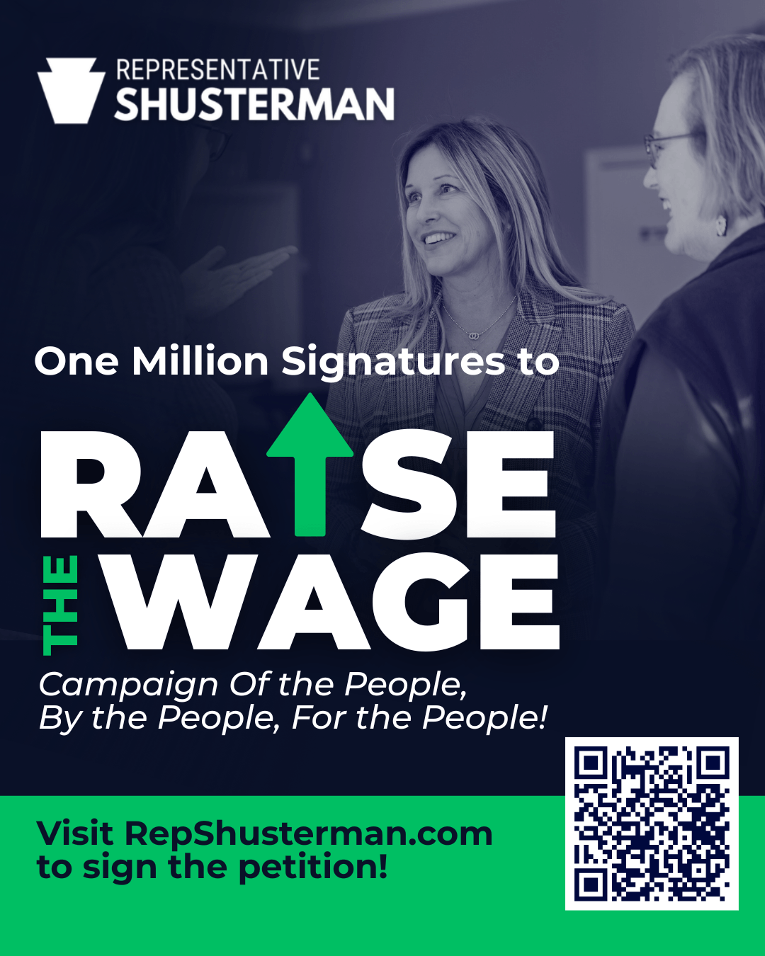 I am asking for your help to urge Senate Majority Leader Joe Pittman to put up the vote in the Senate to raise the minimum wage and for Gov. Shapiro to sign it into law. Raising our minimum wage will ensure PA can attract and keep workers in our Commonwealth as opposed to going to work in neighboring states. Together we can make sure PA is ahead of the curve and not falling behind. Sign the petition here!