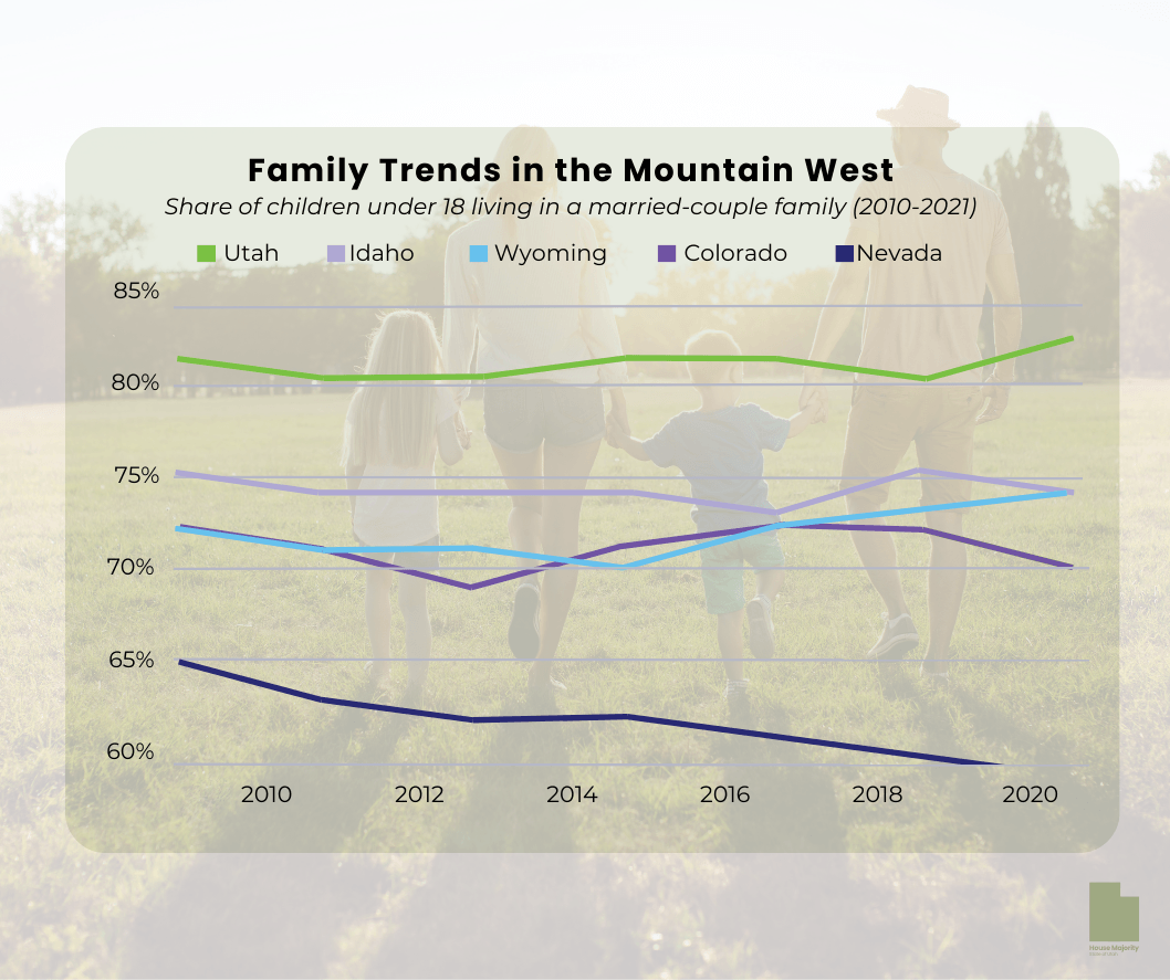 Researchers credit Utah’s tight-knit families and historically high birth rates with fostering the state’s economic might and high quality of life. However, we’re not immune to national trends of declining emphasis on the family. A growing body of research finds that adults who follow a specific sequence of life events live happier, more prosperous lives. We are working on policy solutions to strengthen this sequence and help current and future Utah families thrive.