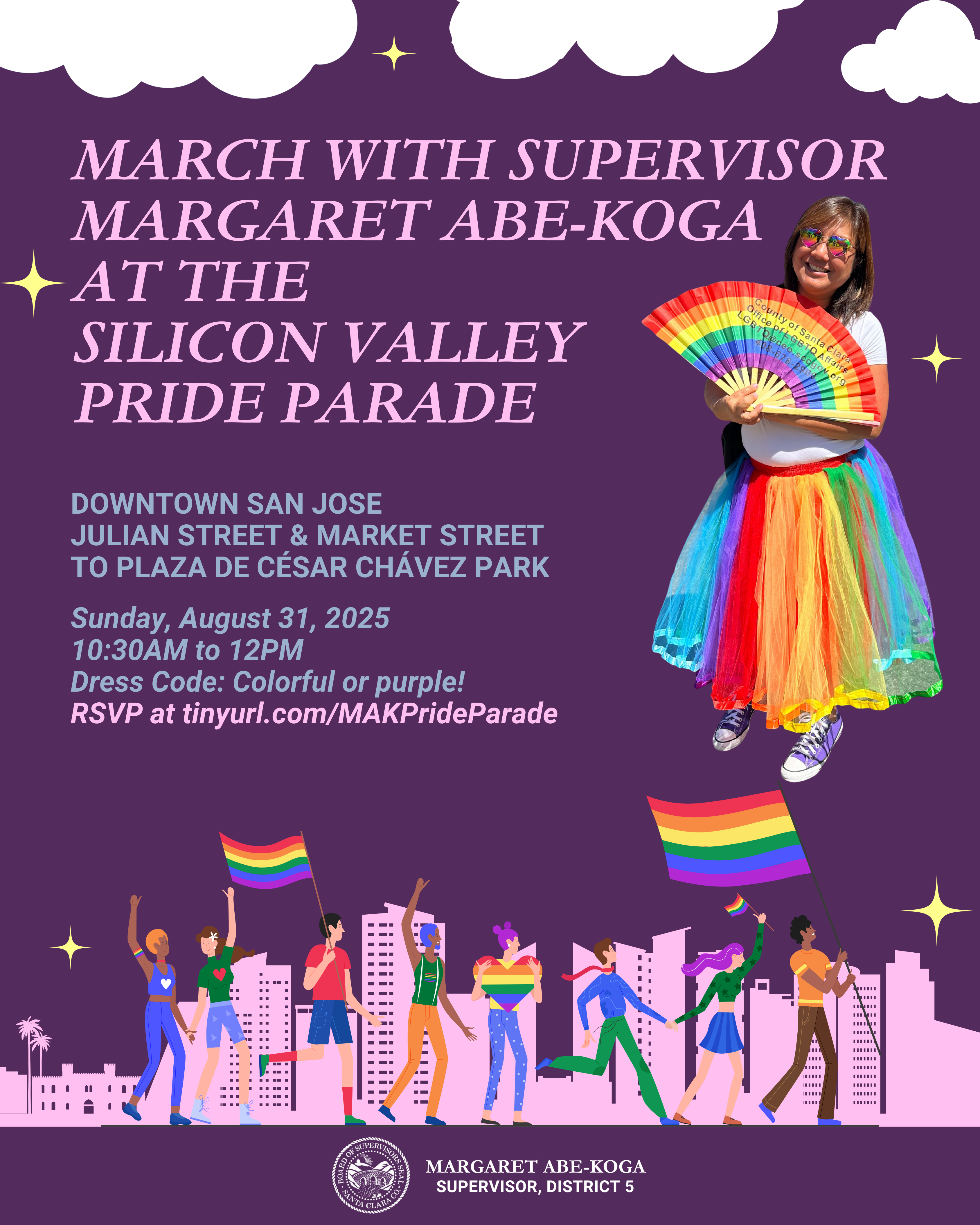 Show your PRIDE in your community: Next Sunday, August 31, my office and I will be walking in the Silicon Valley Pride Parade to celebrate 50 years of love, legacy, and liberation. I’d be honored to have you walk alongside us at 10:30AM from Julian and Market Street to Plaza de Cesar Chavez Park in Downtown San Jose. If you’d like to join our march, please register here. We encourage everyone to dress colorfully or wear purple to show your pride and solidarity. Our office will send parking, walking and transit details to those who RSVP next week.