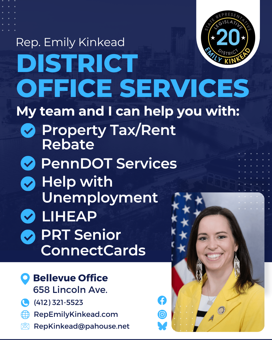 If you have any questions about this email or need assistance with any state-related matter, my staff and I are here to help you however we can! Reach out at RepKinkead@pahouse.net or call 412-321-5523.