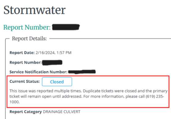 What’s been happening is that when several neighbors report the same problem, the City department responsible will keep just one ticket open and close the duplicates. Though we at the City know that they weren’t just marking tickets closed for no reason, residents have often felt ignored or dismissed.