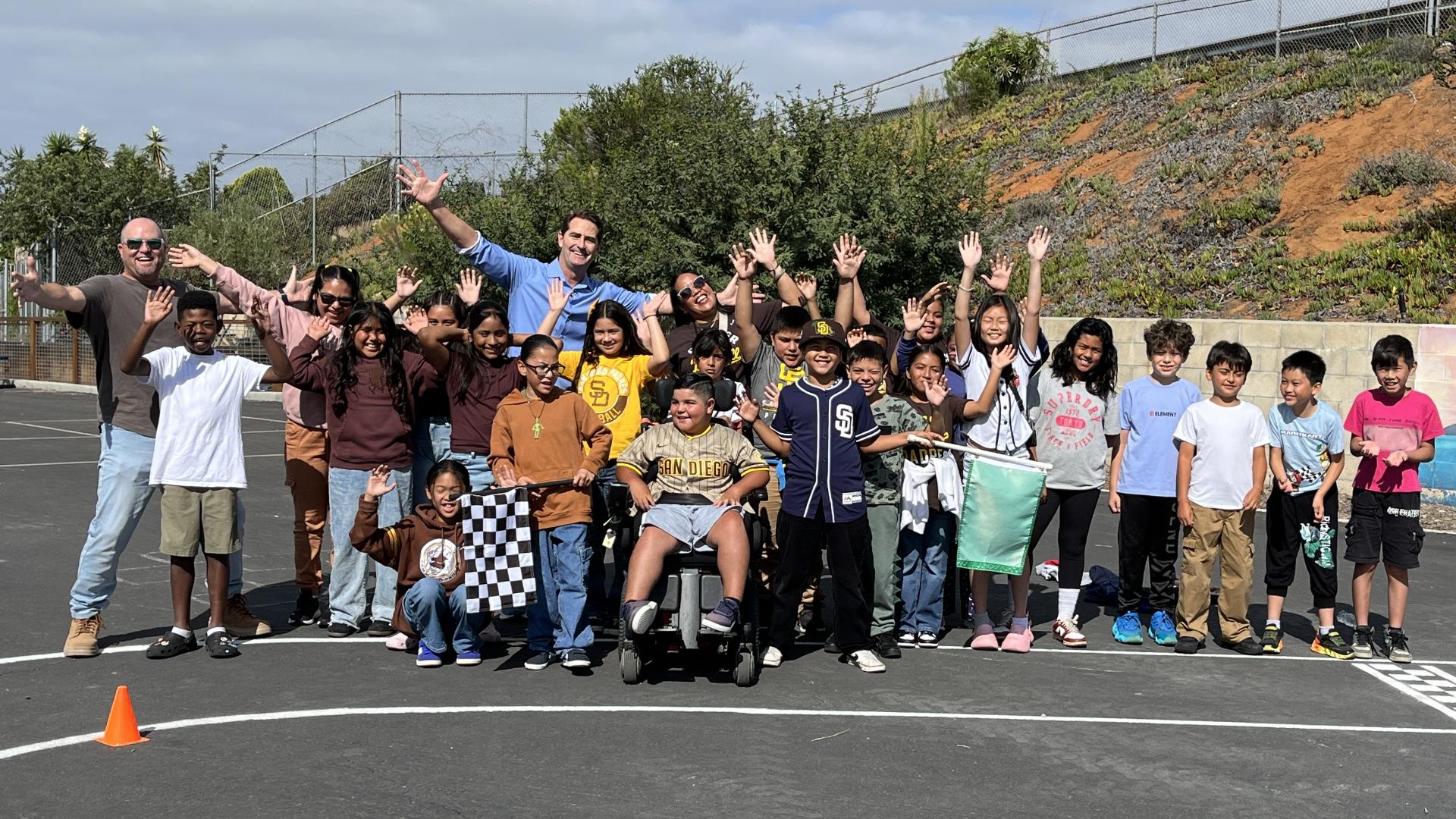 Eddie is a fourth grader at Linda Vista Elementary School and was diagnosed with Duchenne Muscular Dystrophy four years ago. Though Eddie faced limitations on the playground in the past due to his condition, he can now race alongside his classmates thanks to a custom-built racetrack designed just for his wheelchair.