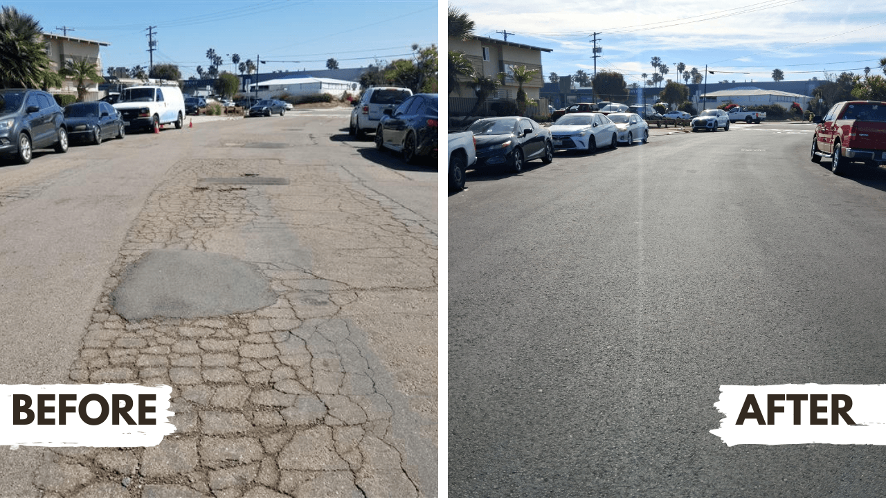 We resurfaced nearly a mile of Figueroa Boulevard between Bond Street and Grand Avenue in eastern Pacific Beach, replacing a roadway that had fallen into “failed” condition. What used to be cracked pavement and potholes is now a smooth, safer road, thanks to our City crews.