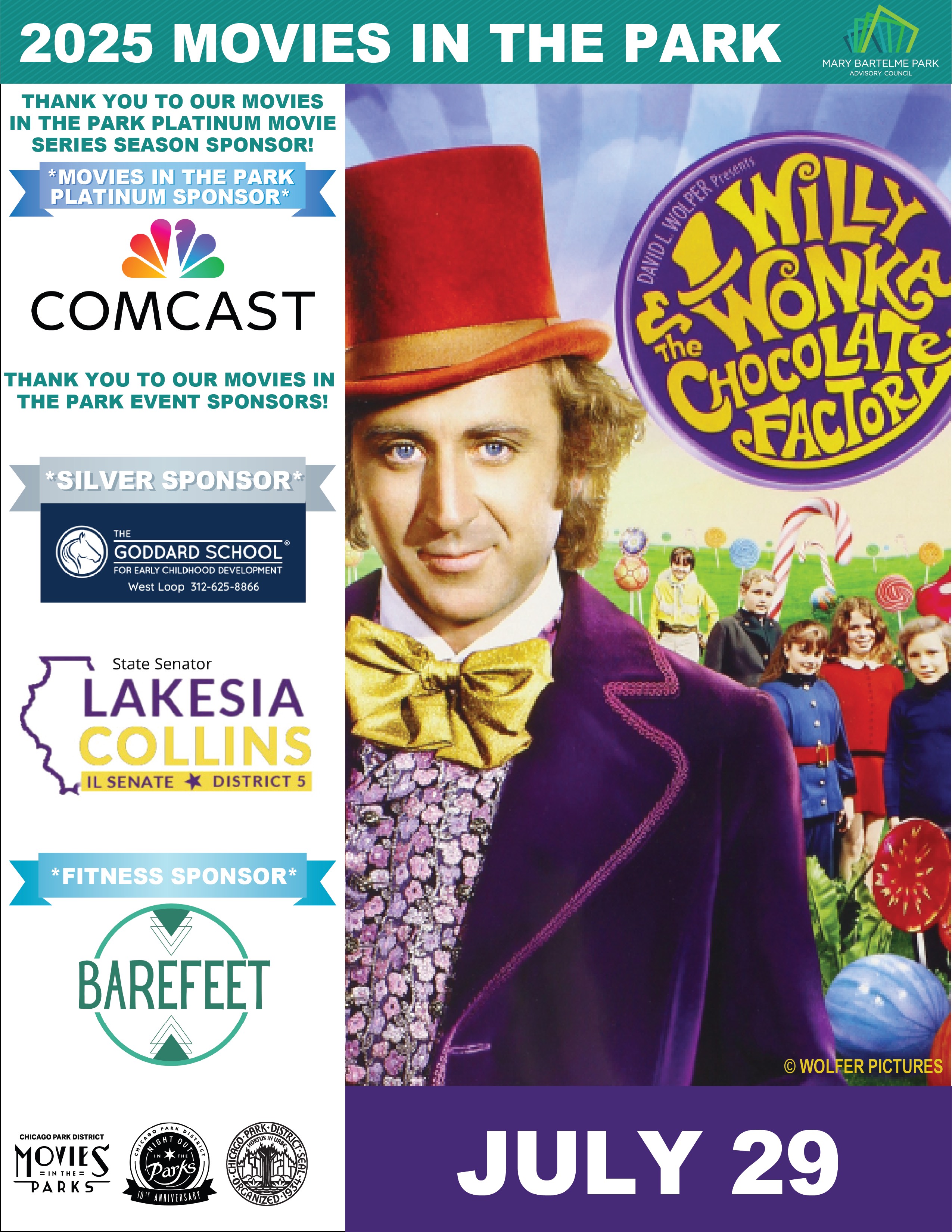 Mark your calendars for five exciting movies brought to you by the Mary Bartelme Park Advisory Council! All movies begin at dusk. For the full 'Movies in the Parks' schedule, click here.