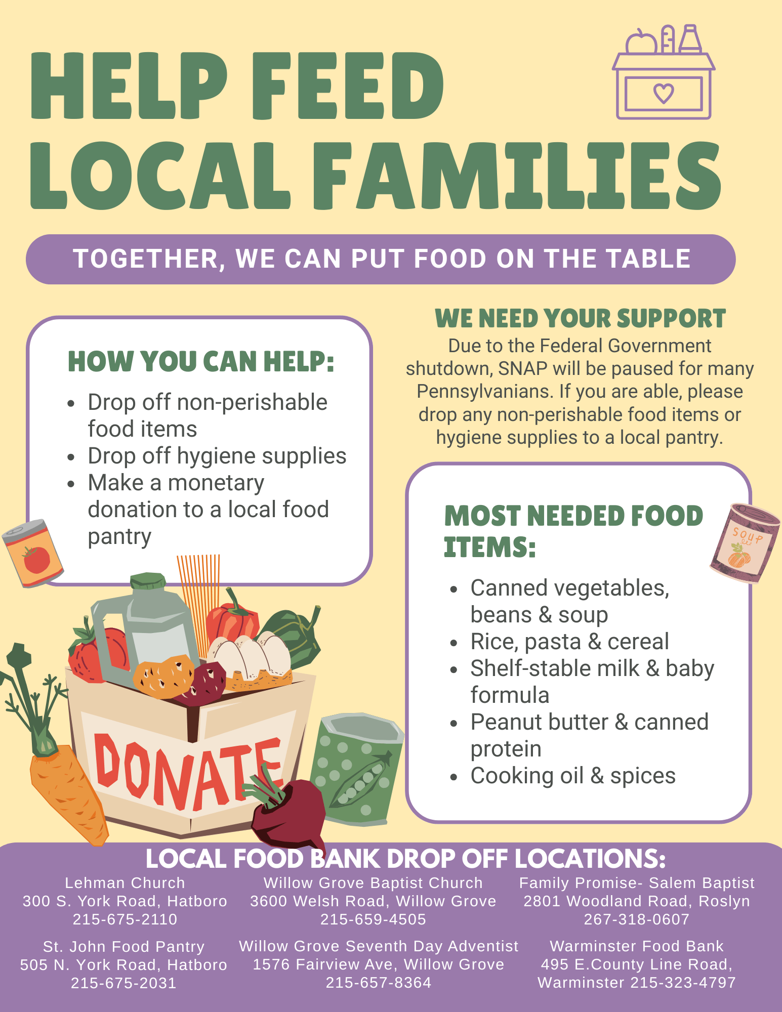 For local food bank donations, see the flyer below for local food banks