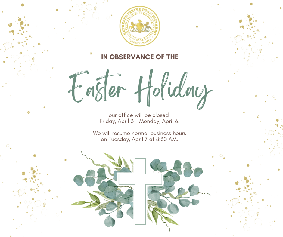 My office will be closed for Good Friday and Easter Monday to allow the members of my team to spend time with their families.