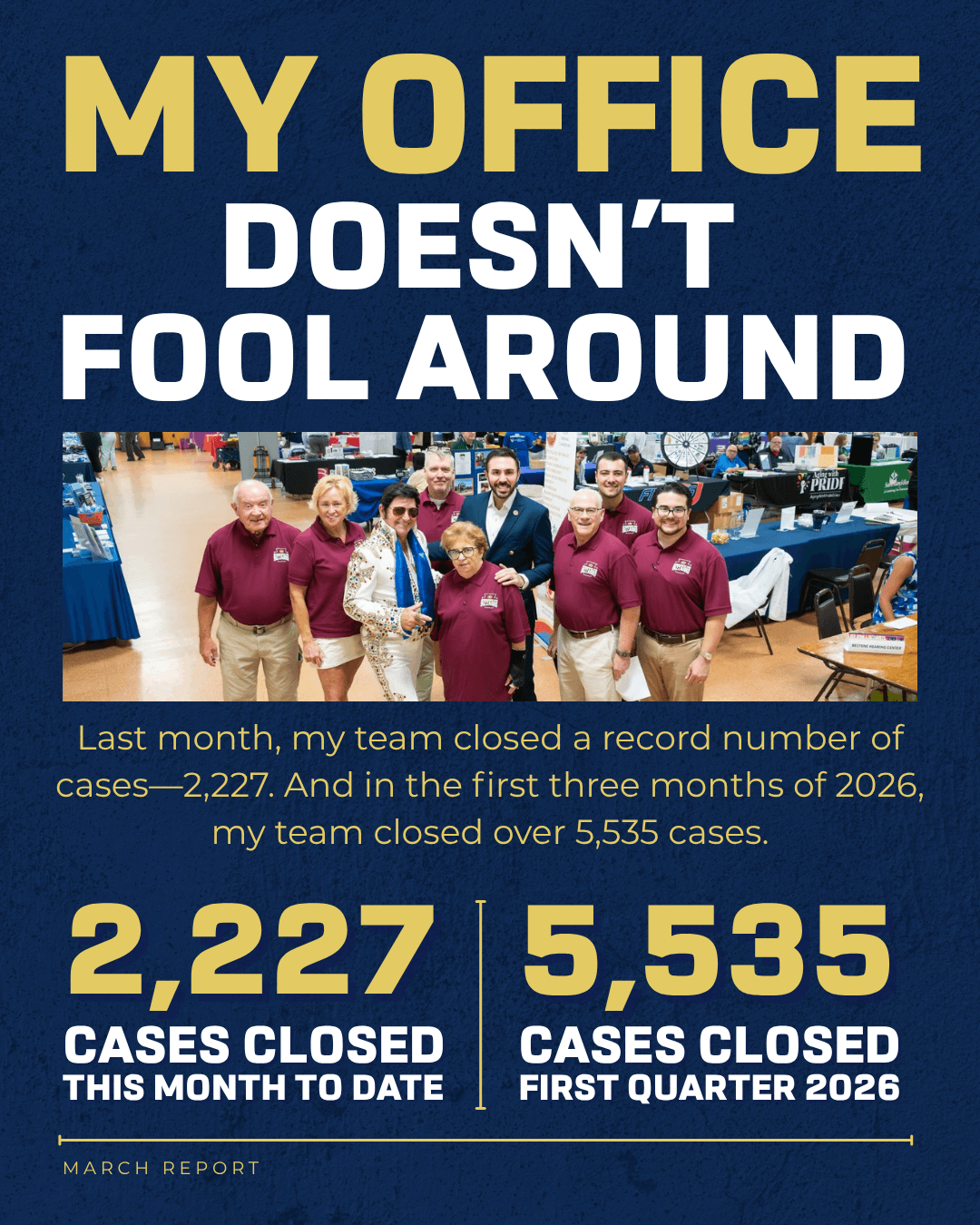 For the first quarter of 2026, my dedicated team closed 5,535 cases — including 2,227 in March alone. So far, we have completed nearly 500 rebates, returning $315,000 to the region. If you need help filing your Property Tax & Rent Rebate, trust the professionals — we’re here to make it easy.