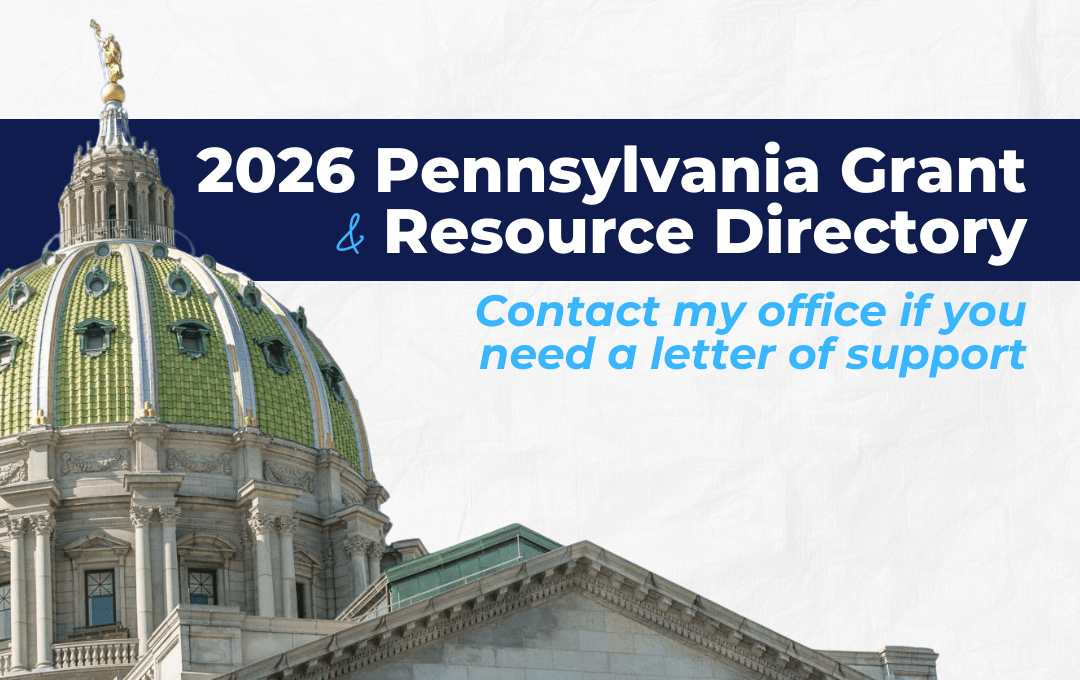 My office can work alongside schools, first responders, law enforcement, nonprofits, and local businesses to secure state funding through Pennsylvania grant programs. If you have any questions or issues with applying for a grant, my office can help. Reach out to us with any questions.