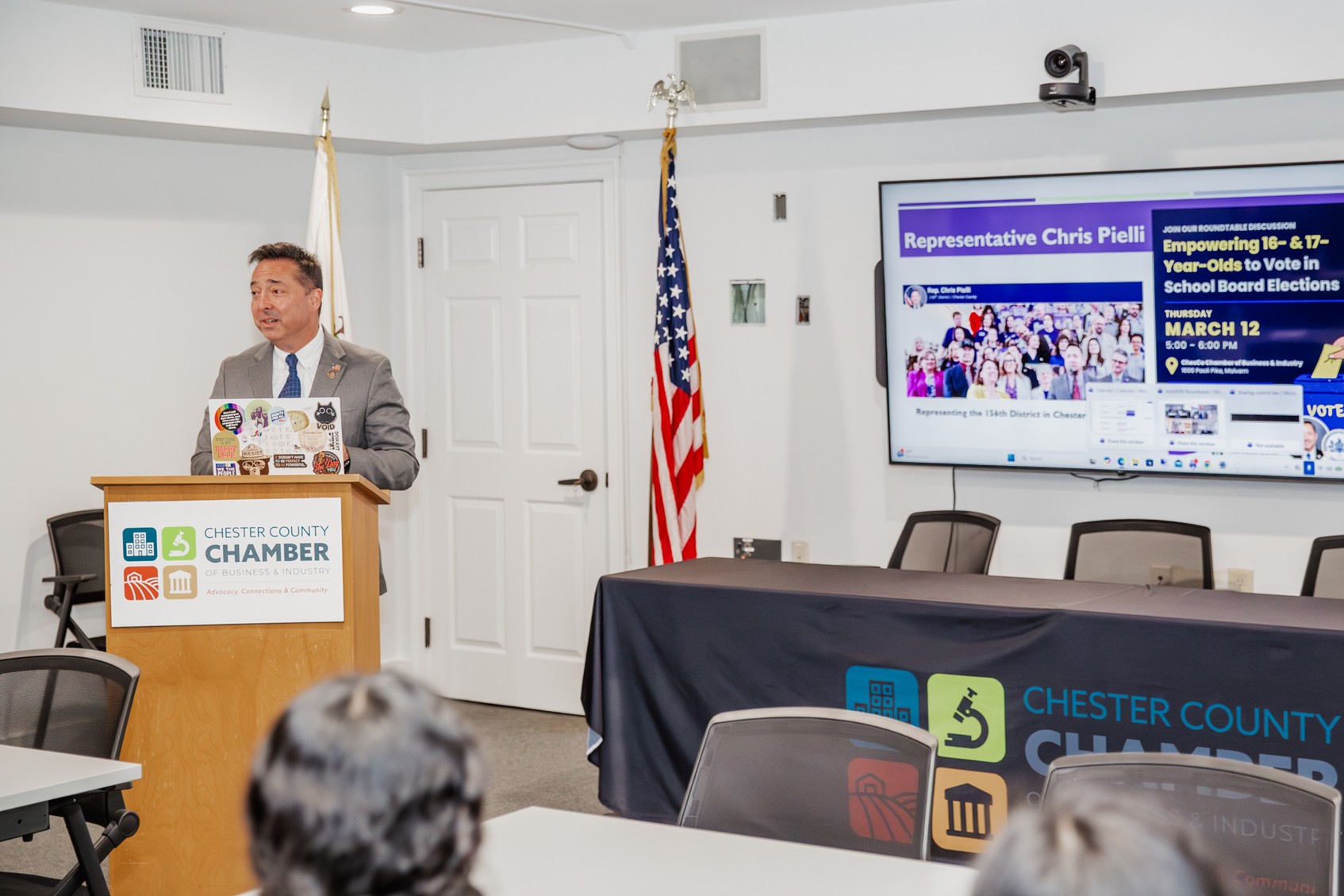 Earlier this month, Vote16PA hosted a roundtable discussion among state legislators and state government staffers held at the Chester County Chamber of Business and Industry. We heard from high school students around Chester County, who as a group presented compelling arguments to empower them to have an electoral voice over matters that directly affect their education. They presented research evidence and examples of countries and municipal governments in other states that allow 16- and 17-year-olds to vote in school board elections or in all municipal elections.