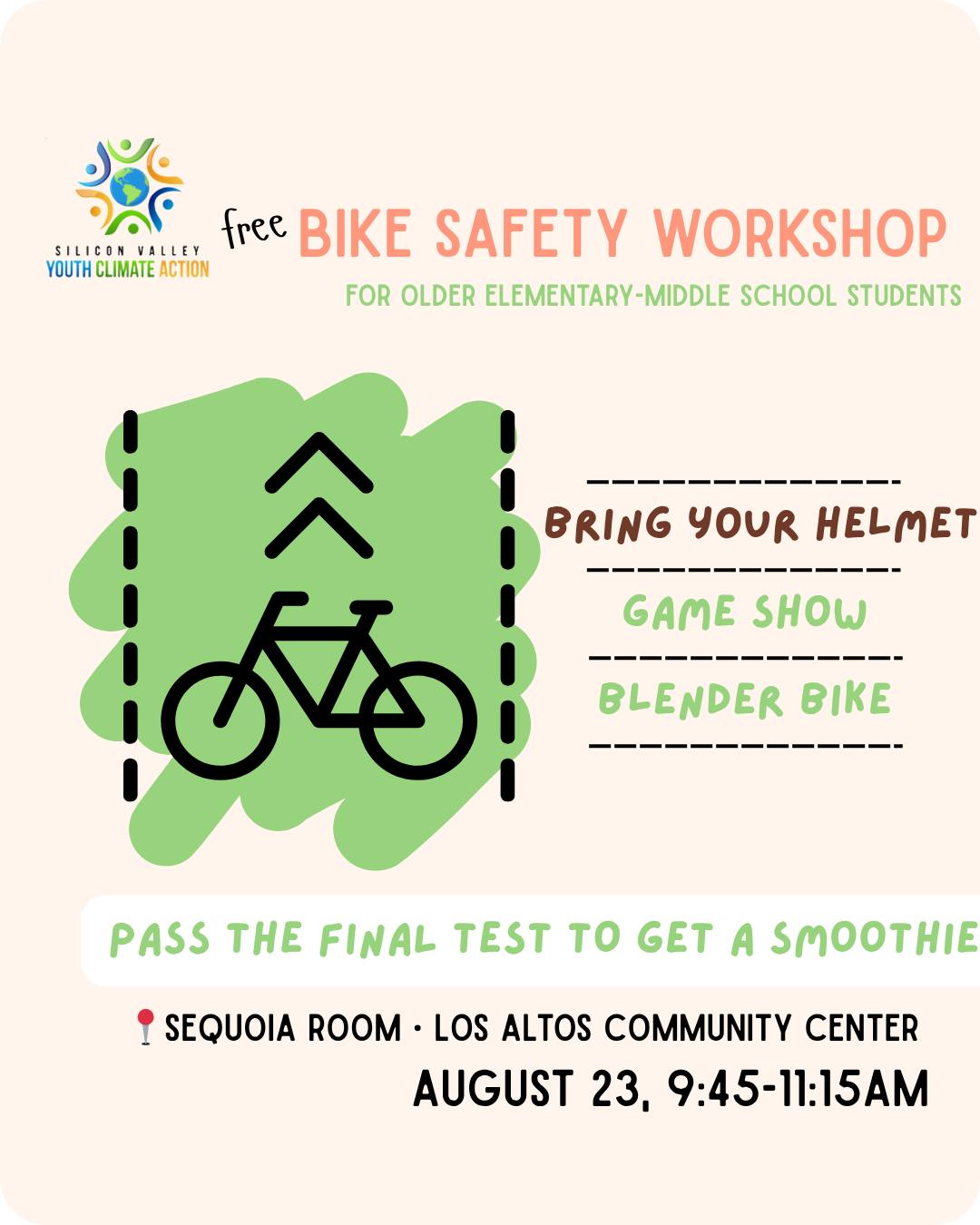 Is your adolescent ready to roll safely into the school year? Join Silicon Valley Youth Climate Action (SVYCA) for a free, hands-on bike safety workshop designed to teach essential skills in a fun and engaging way.