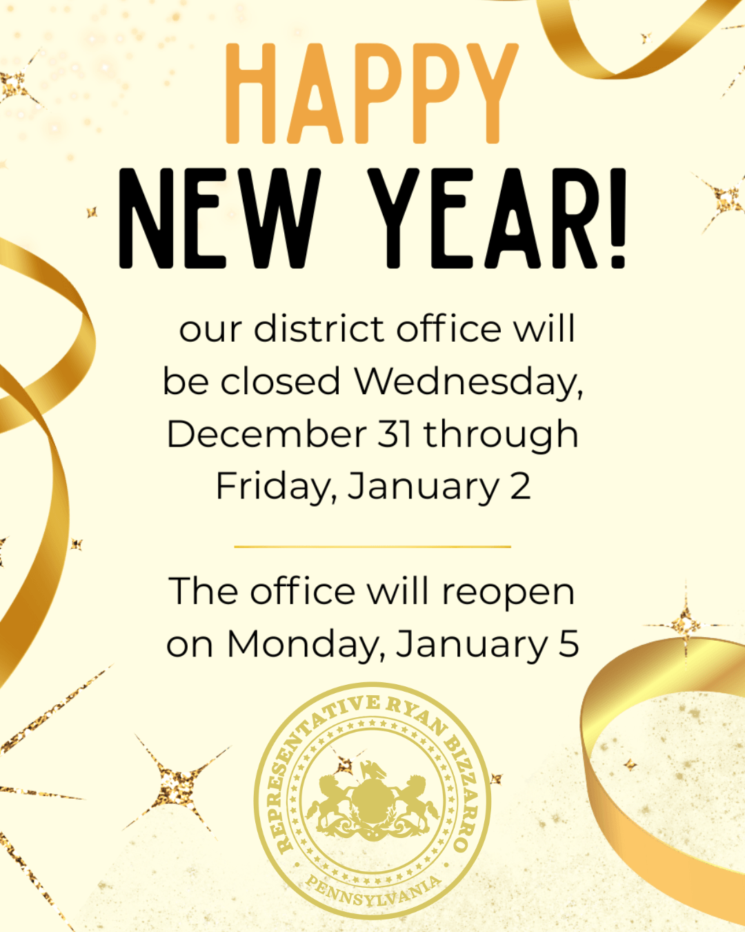 It is a true honor to serve our community and represent this region in Harrisburg. My team and I are committed to assisting as many people as possible in navigating state government and accessing the programs and resources they depend on. We are deeply grateful for your patience, confidence, and support — and we look forward to continuing our work together in 2026.