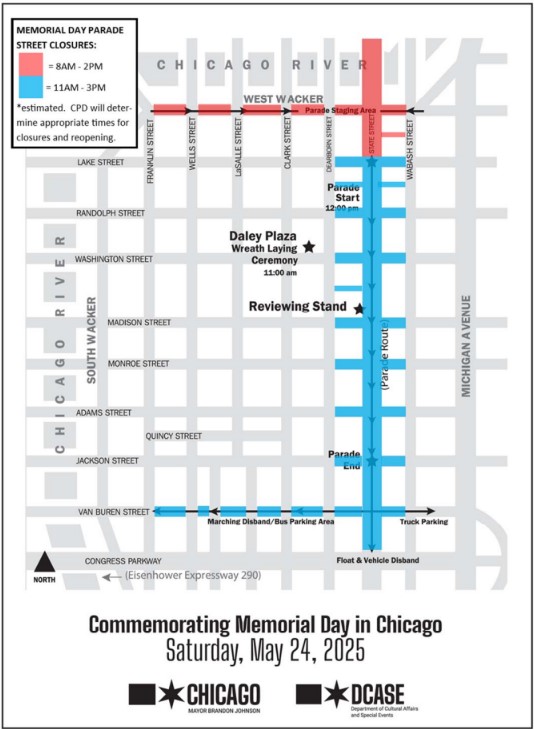 I hope to see many of you at Saturday's Memorial Day Parade. No Parking restrictions will be posted along the route and from 7:00am – 4:00pm. There will also be parking restrictions around Daley Plaza for the Wreath Laying.