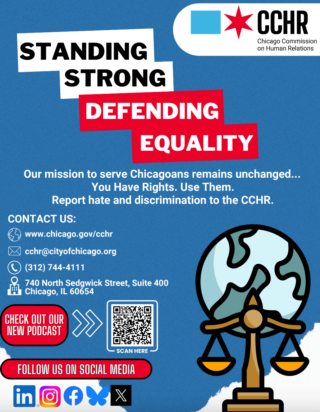Our mission to serve Chicagoans remains unchanged. You Have Rights. Use Them. Report hate and discrimination to the CCHR.