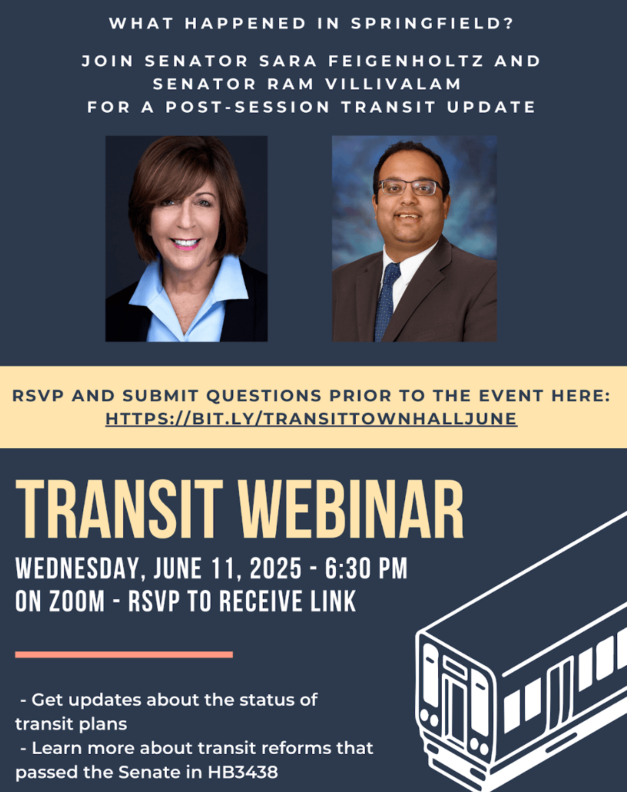 We are closely monitoring the news out of Springfield around the future funding of the Regional Transit Association and CTA. As a frequent CTA rider myself, I believe that we must ensure the CTA remains safe, accountable, and efficient. Our office invites you to attend an upcoming virtual town hall focused on the transit funding cliff, held by State Senators Sara Feigenholtz and Ram Villivalam. On Wednesday, June 11th at 6:30pm the Senators will share updates from the state's spring legislative session and detail what’s ahead for reforming and funding our regional transit systems. You can submit questions in advance and RSVP here.