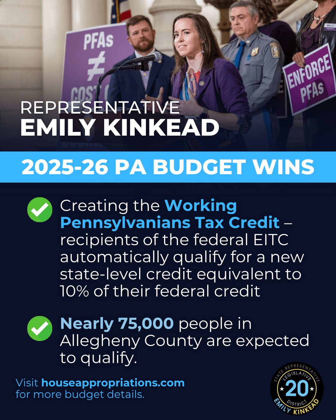 As you prepare to file your taxes this year, remember that, thanks to state budget priorities that my Democratic colleagues and I fought for, there is a new state-level tax credit available that about 75,000 people here in Allegheny County will qualify for.