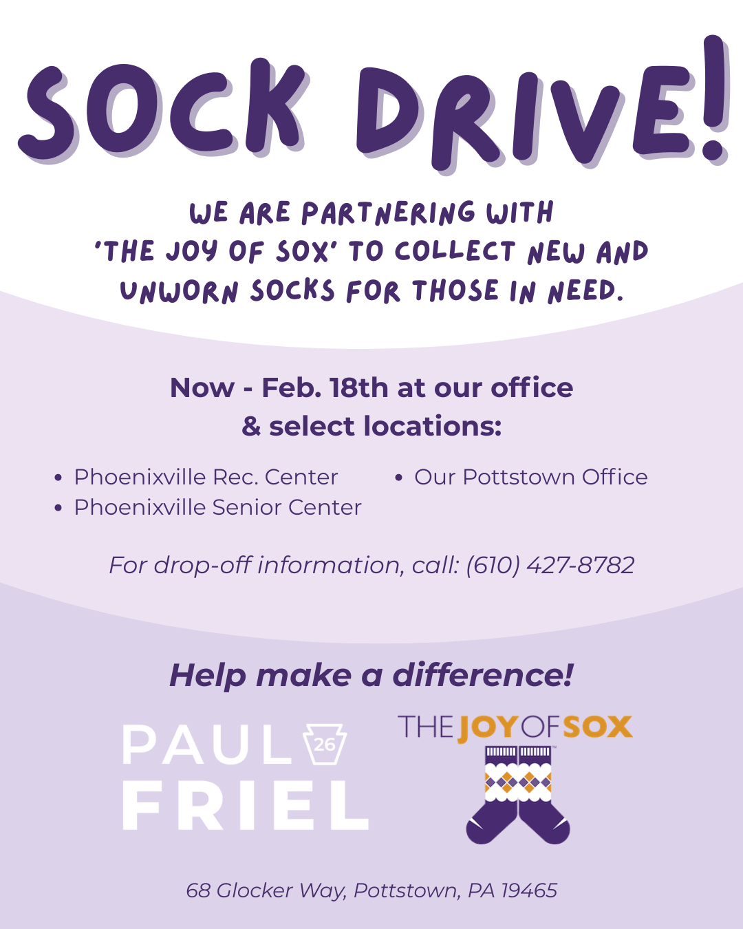 Got Socks? My office staff and I are collecting new socks for those in need in partnership with The Joy of Sox.