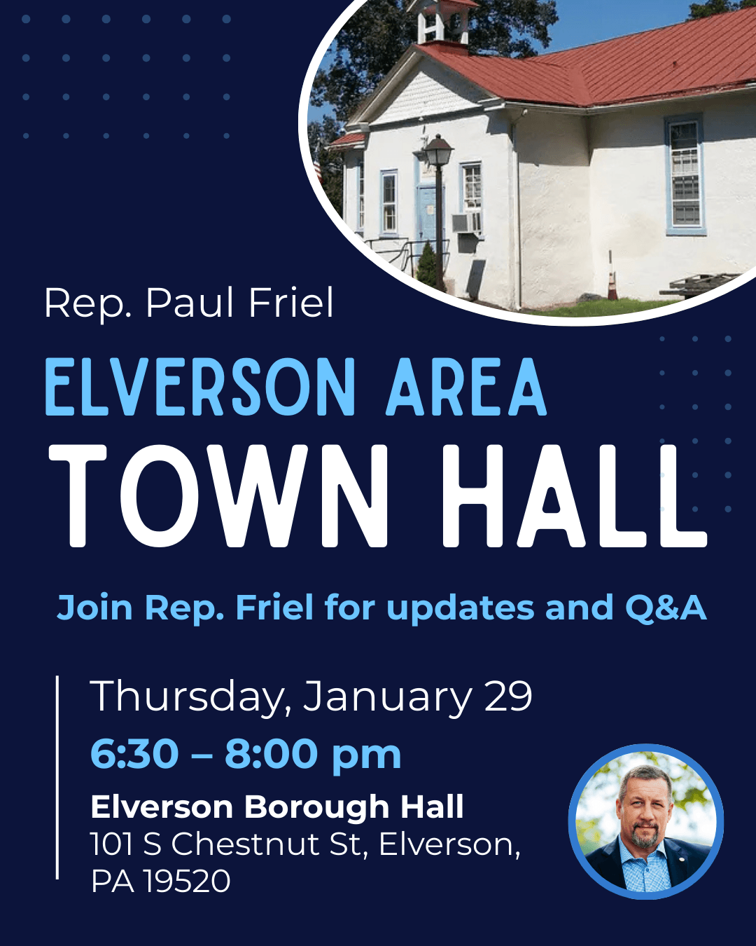 For questions or accommodations please call my district office at (610) 427-8782 or email RepFriel@PaHouse.net.