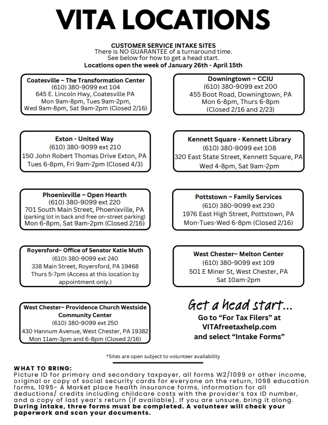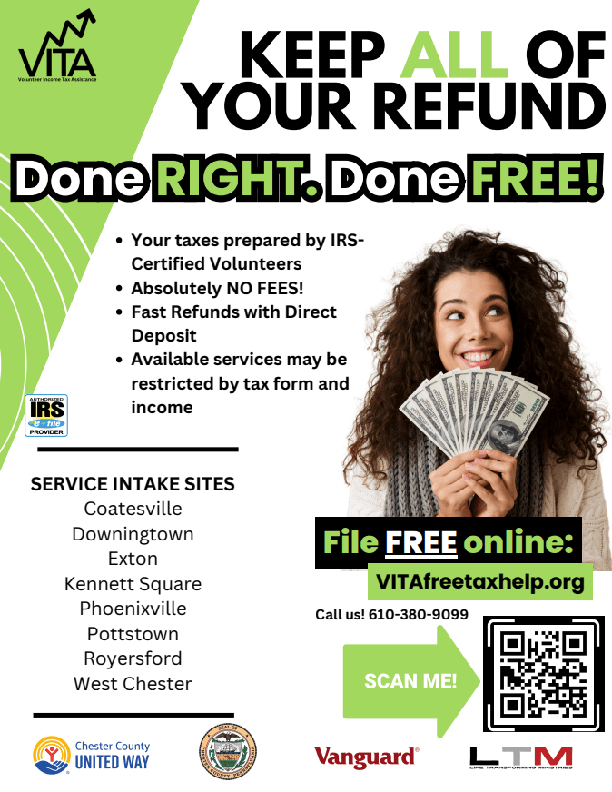 Chester County and VITA are partnering to help people in Chester County file their taxes. Check out to see if you qualify for this free service.