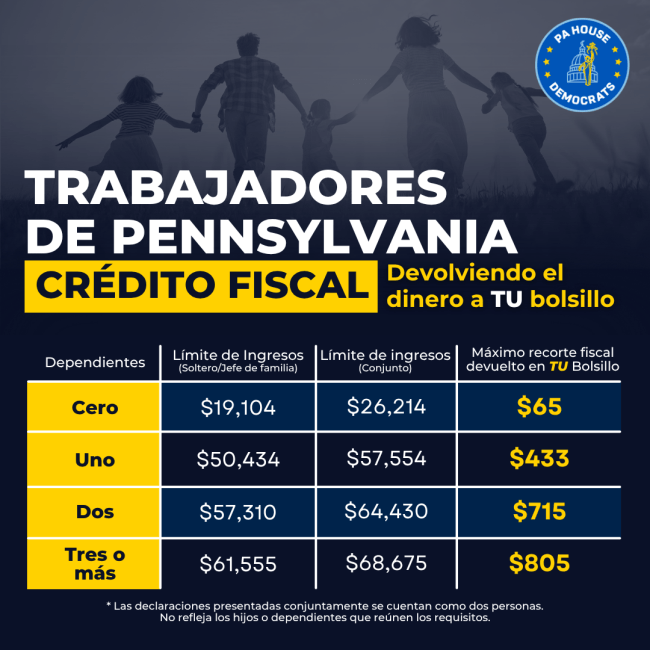 With tax season officially underway, I encourage eligible workers to take advantage of new state tax credits championed by Gov. Shapiro and House Democrats that deliver meaningful tax relief to those who need it most.