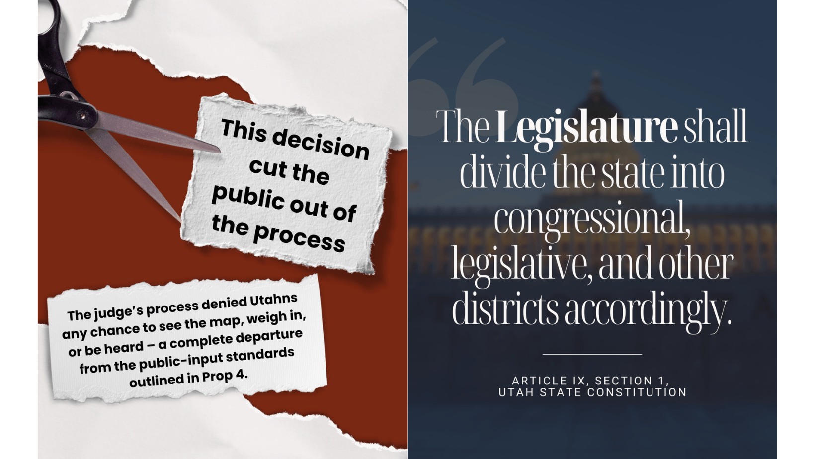 - Having a court or a judge make the final decision on congressional maps is not following the Utah Constitution.