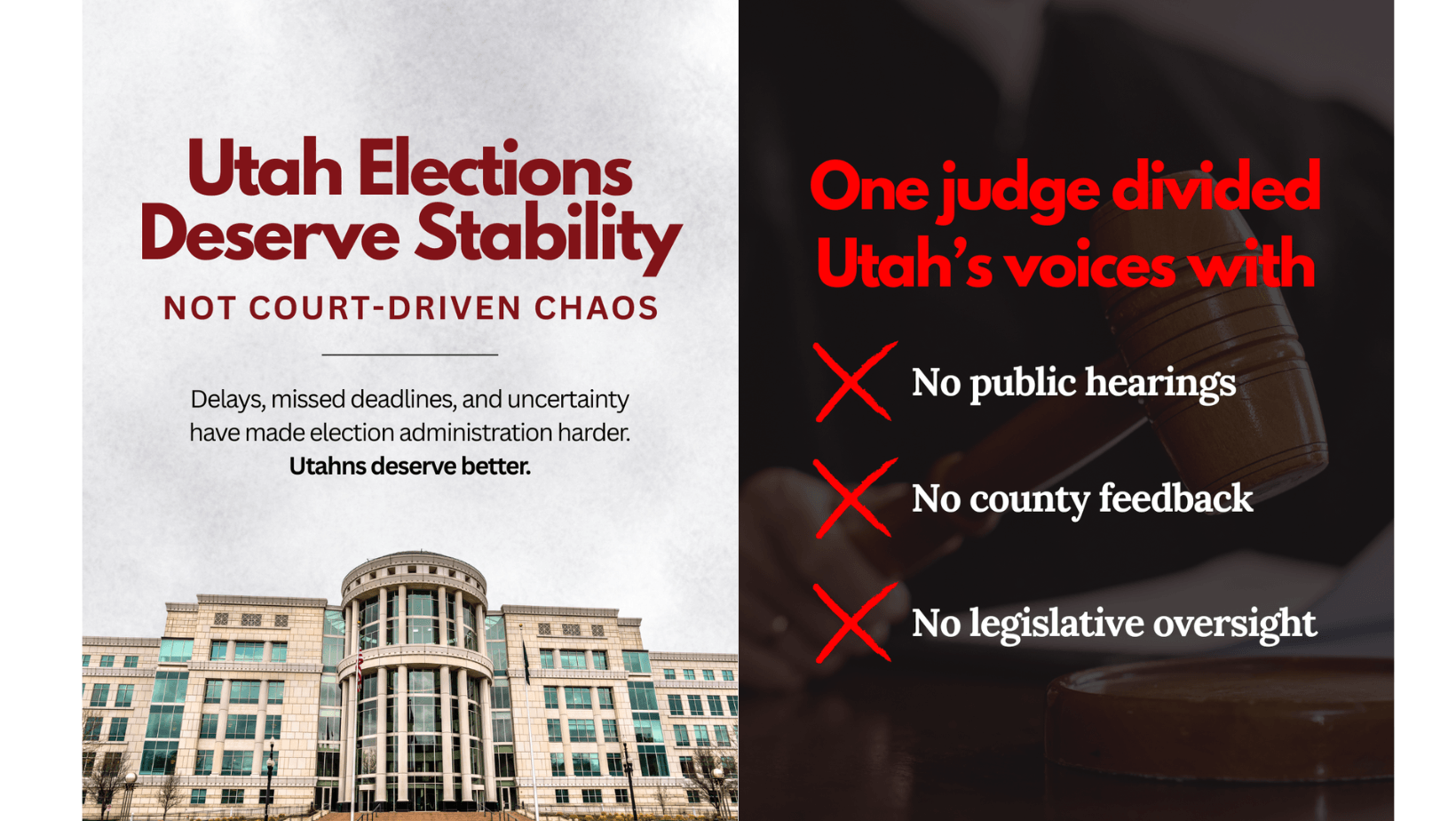 November developments: Since Judge Gibson picked a Congressional Map on November 10, additional problems and concerns have arisen with her selected map, the process in which this map was created, and how it did not follow Prop 4. As a result, Governor Cox is calling the Legislature into a Special Session on December 9 at the Capitol to ensure the state’s election system has the clarity it needs. Specifically, 1) Judge Gibson’s November 10 ruling will be appealed to the Utah Supreme Court, 2) a state constitutional amendment will be proposed for the November 2026 ballot which all Utahns will vote upon.