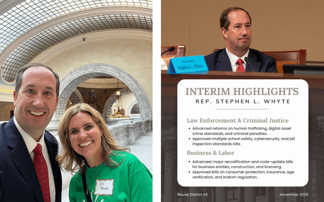 November’s interim legislative meetings at the Capitol worked on hundreds of issues to help families, address today’s problems, and to plan for the future. I love and appreciate when neighbors and friends from our House District are involved. This is truly a team effort involving everyone in the state. Interim meeting outcomes can be found here. You can also watch the full recordings of the meetings at le.utah.gov.