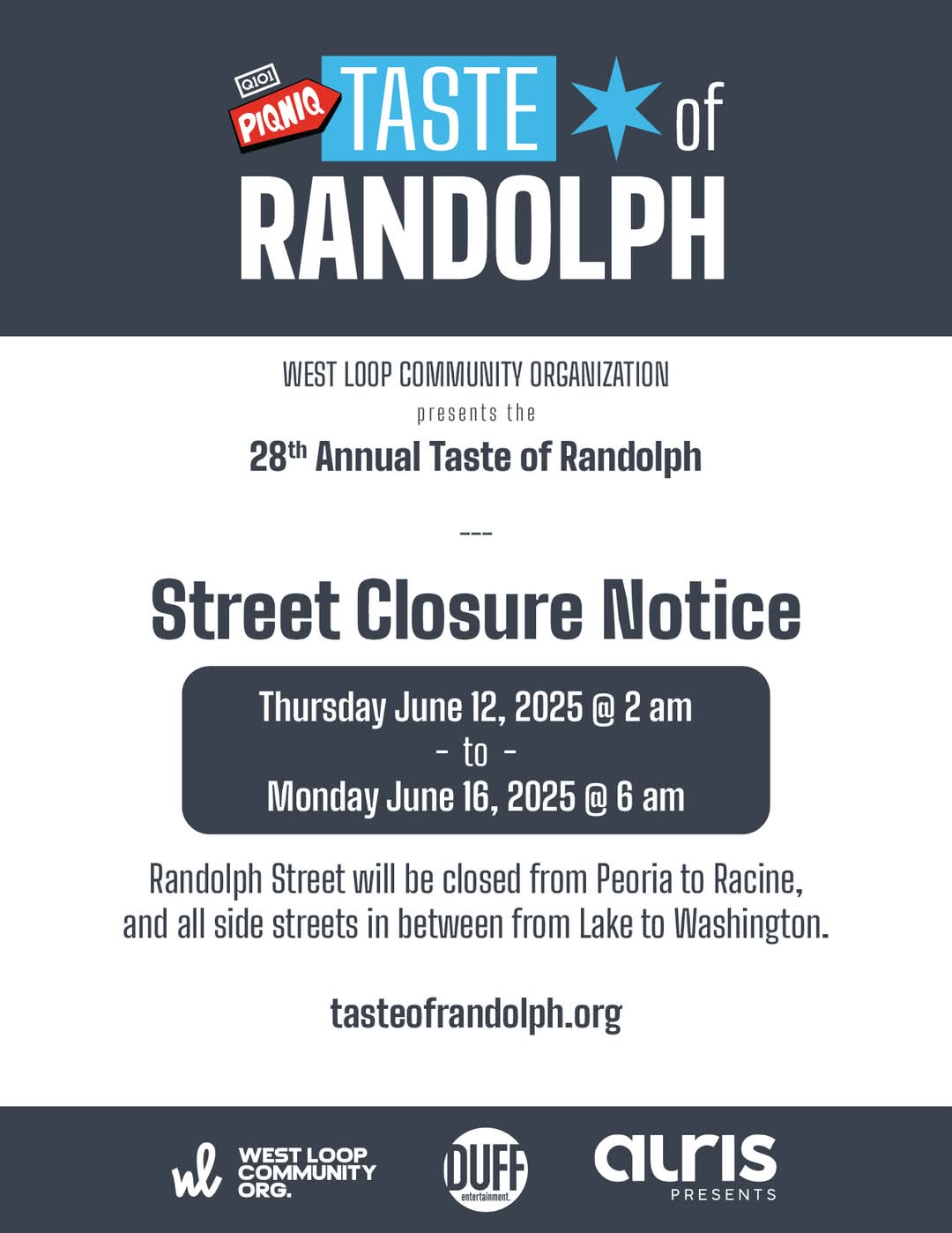 Local sidewalk and street closures start next Thursday for the 2025 NASCAR Chicago Street Race. Starting at midnight on June 19th, the following closures will be in place through July 14th: