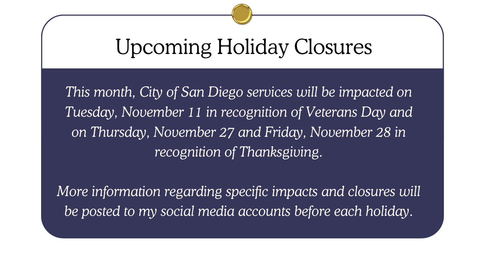 I want to start this month’s District 7 Dispatch by thanking all of you who reached out by email, phone, and on social media following the recent, tragic traffic incident on Jackson Drive. Many of you contacted me to share your concerns about neighborhood pedestrian safety, reflect on your fears as parents, grandparents, teachers, and community members, and propose solutions to traffic issues not just in San Carlos, but throughout District 7 and City of San Diego.
