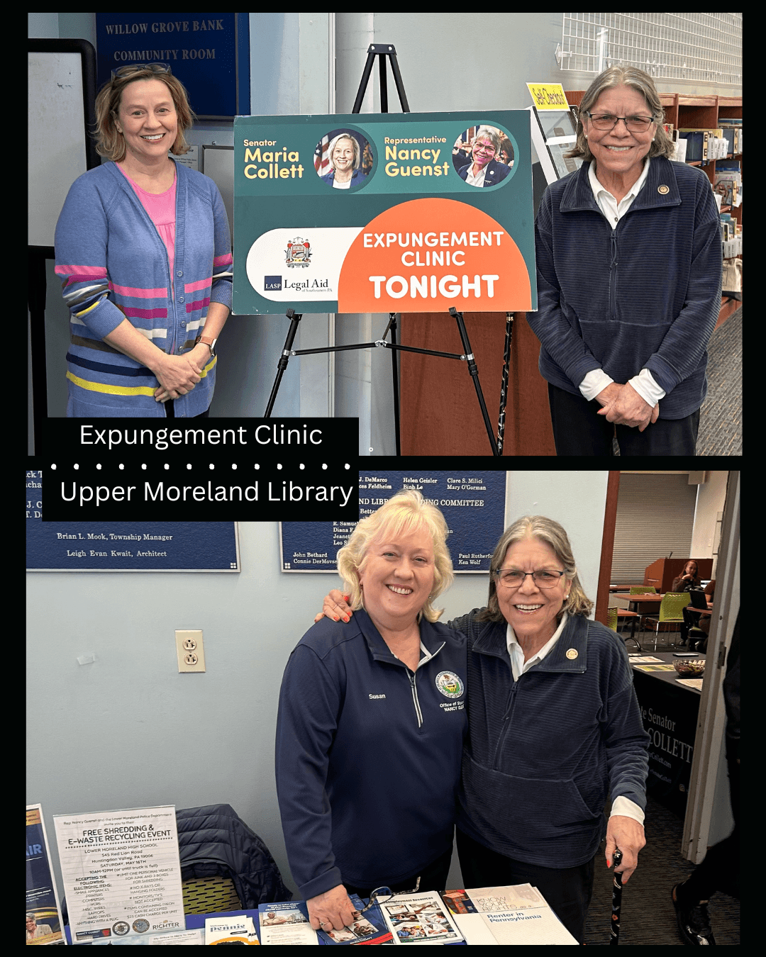 Last Wednesday, we held our annual Expungement Clinic at the Upper Moreland Free Public Library. Along with Senator Maria Collett and Montgomery County Public Defenders - we were able to help over 15 individuals - assisting them, if eligible, in the process of expunging their records.