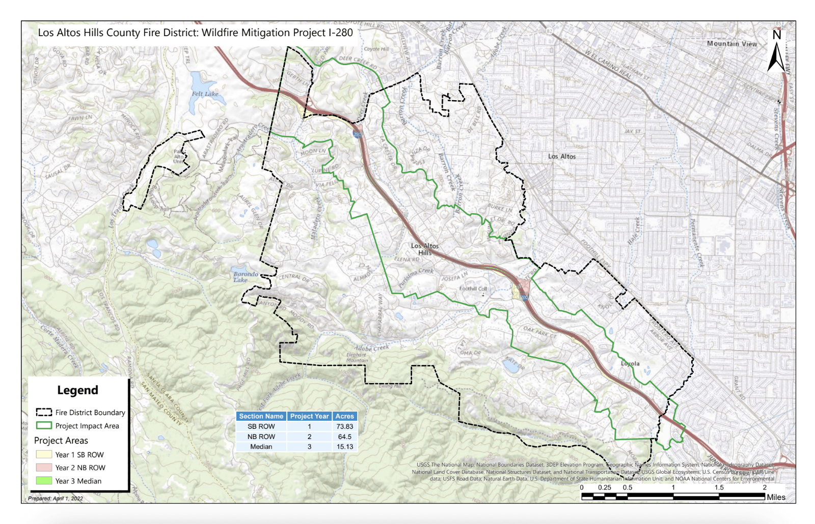 A major wildfire risk reduction project is coming to I-280, spanning Palo Alto, Los Altos, and Cupertino.