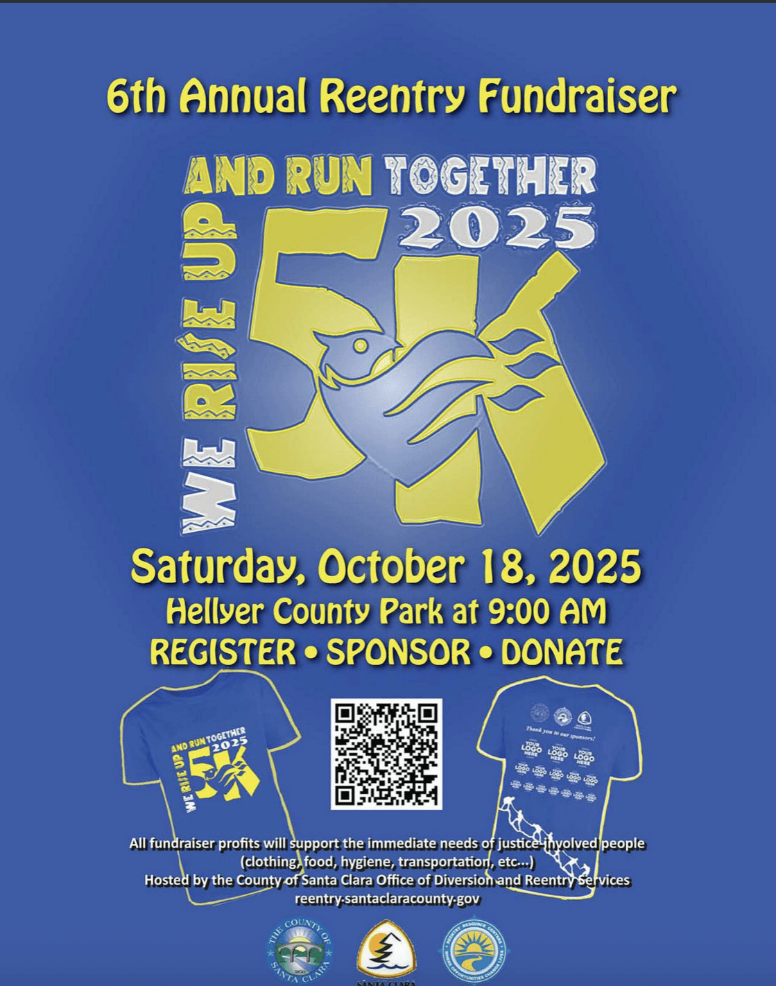 Run for change at the County of Santa Clara’s 2025 Reentry Rise Up and Run 5K Fundraiser on Saturday, October 18, at Hellyer Park at 9AM.