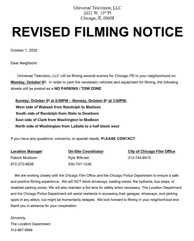 Eastbound traffic will be rerouted south on Des Plaines, east on Washington, north on Franklin, and east onto Lake St. Westbound traffic will be rerouted south on Wacker, west on Madison, north on Jefferson, and west onto Lake St. Click here for the full detour map. During this work, CTA Green and Pink lines will operate normally until September 2026. The work on the Lake Street Bascule Bridge is expected to be completed in January 2028. The contractor is planning on overnight work tentatively on October 11th, 12th, 22nd, 25th and 26th (weather permitting).