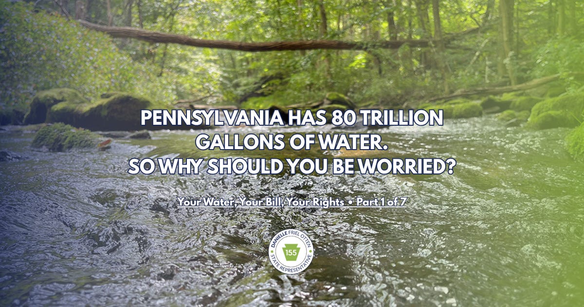 Read my full post on Substack to find out why Pennsylvania’s water future is more fragile than it appears and what we can do to protect this essential natural resource while also protecting families from rising water bills.