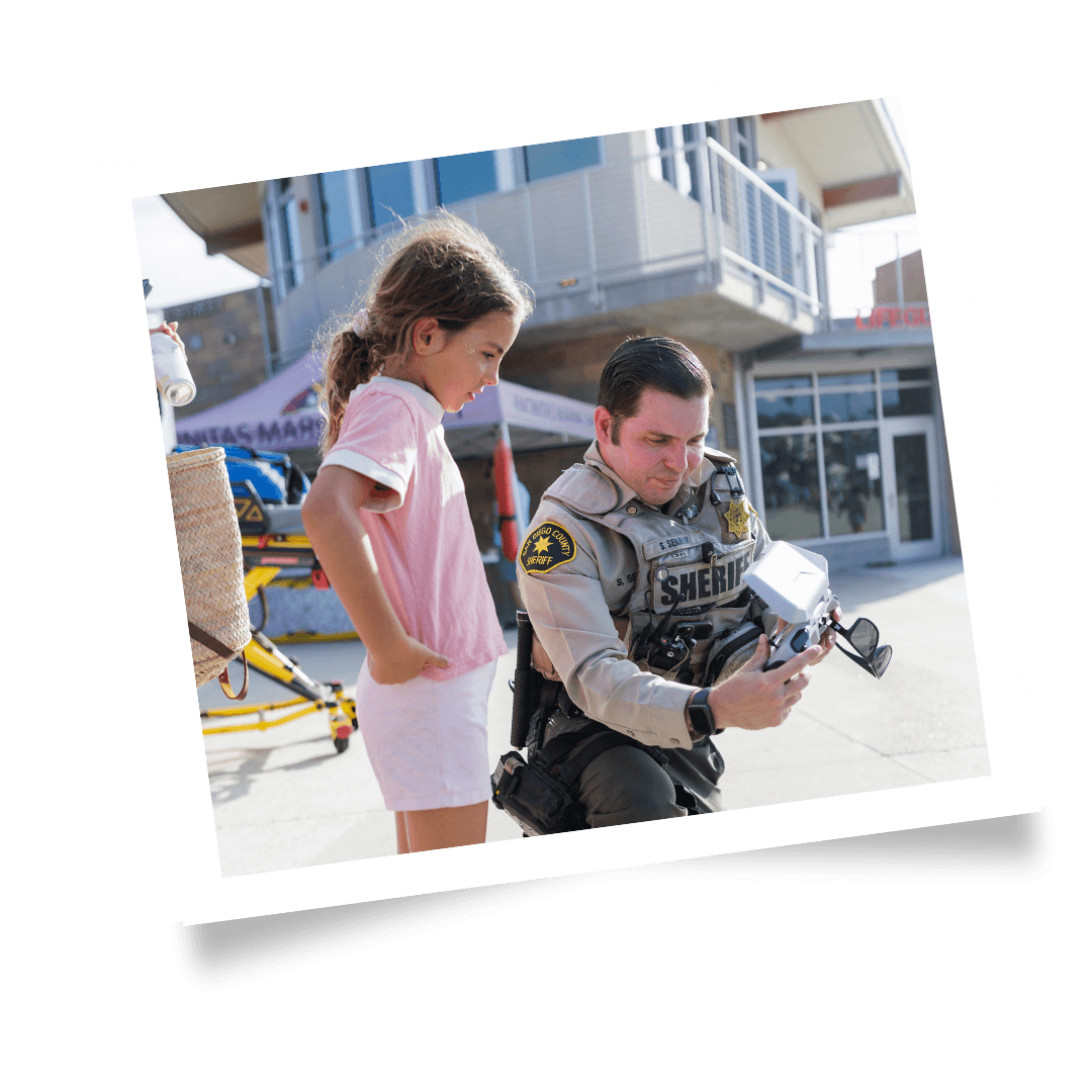 Noche Nacional de Seguridad en North Coastal: el diputado mostrando un dron