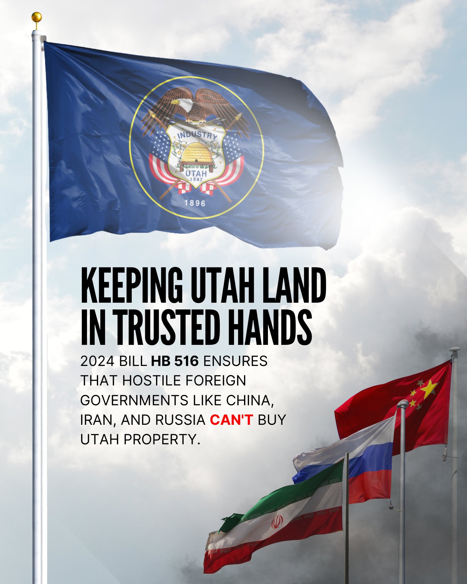 Utah is leading the way in safeguarding our land and military assets. A state law passed in 2023 and strengthened in 2024, which prevents restricted foreign entities from purchasing land in the state, blocked a land purchase in Utah County last month. Read more here. As foreign adversaries like China seek greater influence, Utah is showing how states can take proactive steps to defend their communities and critical assets. Utah’s example underscores the vital role states play in safeguarding America’s future.