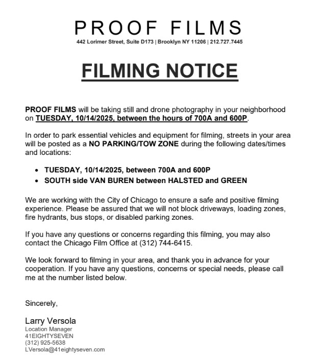A detour plan for the restricted left turn lane from Ashland Ave to Van Buren St will be implemented to send traffic to WB Jackson Blvd, SB Laflin St, then WB Van Buren St. A detour plan will also be implemented for the restricted left turn lane from Ashland Ave to Congress Parkway to send traffic to EB Harrison St, NB Wood St, then EB Congress Parkway. In addition, that the west side sidewalk of the bridge will be closed, and pedestrians will be detoured to east side sidewalk of the bridge.